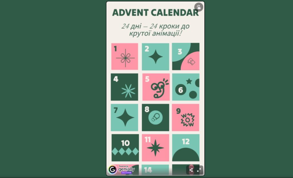 Грушецька Інна Олександрівна, викладачка Вищого професійного училища № 25 м. Хмельницького, – адвент-календар «24 дні – 24 кроки до крутої анімації» (диплом ІІІ ступеня);