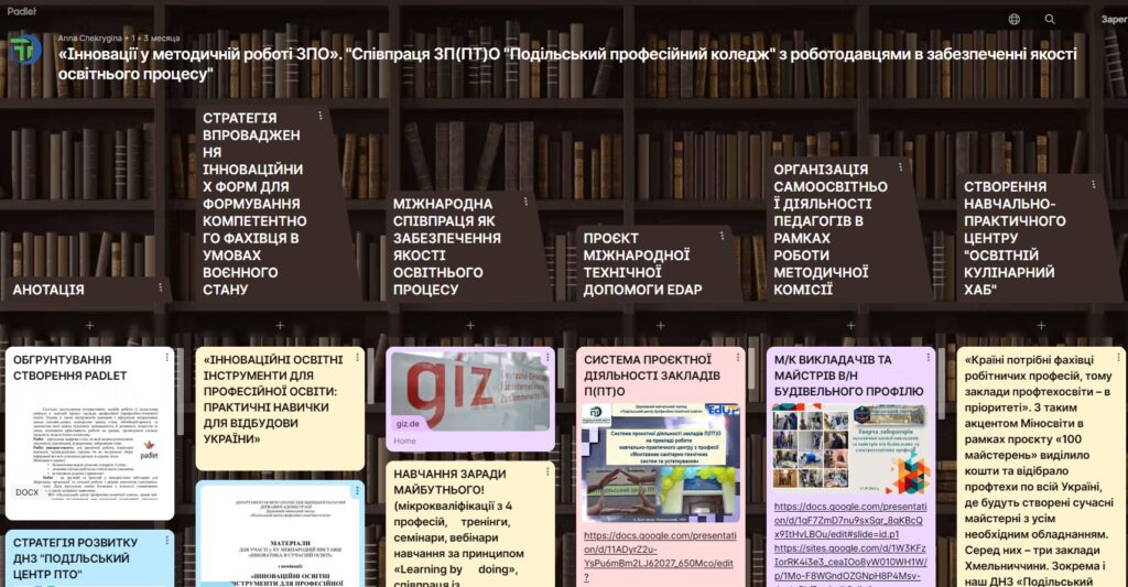 Чекригіна Ганна Борисівна, заступник директора з науково-методичної роботи ЗП(ПТ)О “Подільський професійний коледж”, – Padlet-дошка «Інновації у методичній роботі ЗПО». “Співпраця ЗП(ПТ)О “Подільський професійний коледж” з роботодавцями в забезпеченні якості освітнього процесу” (диплом ІІ ступеня).