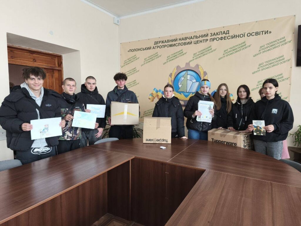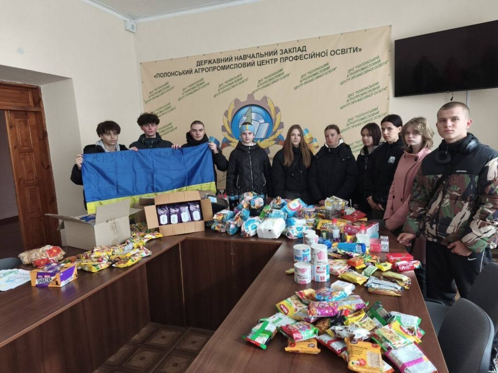 День захисників та захисниць України – свято, яке об’єднало усю учнівську родину Центру. Здобувачі освіти ДНЗ “Полонський АЦПО” стали ініціаторами акції “Подарунок захисникам та захисницям”. Кожен готував презент воїнам, що мужньо тримають лінію фронту. Смаколики, речі першої необхідності, засоби гігієни, листи подяки, малюнки і жовто-блакитний стяг із побажаннями від лідерів Центру були відправлені нашим воїнам.